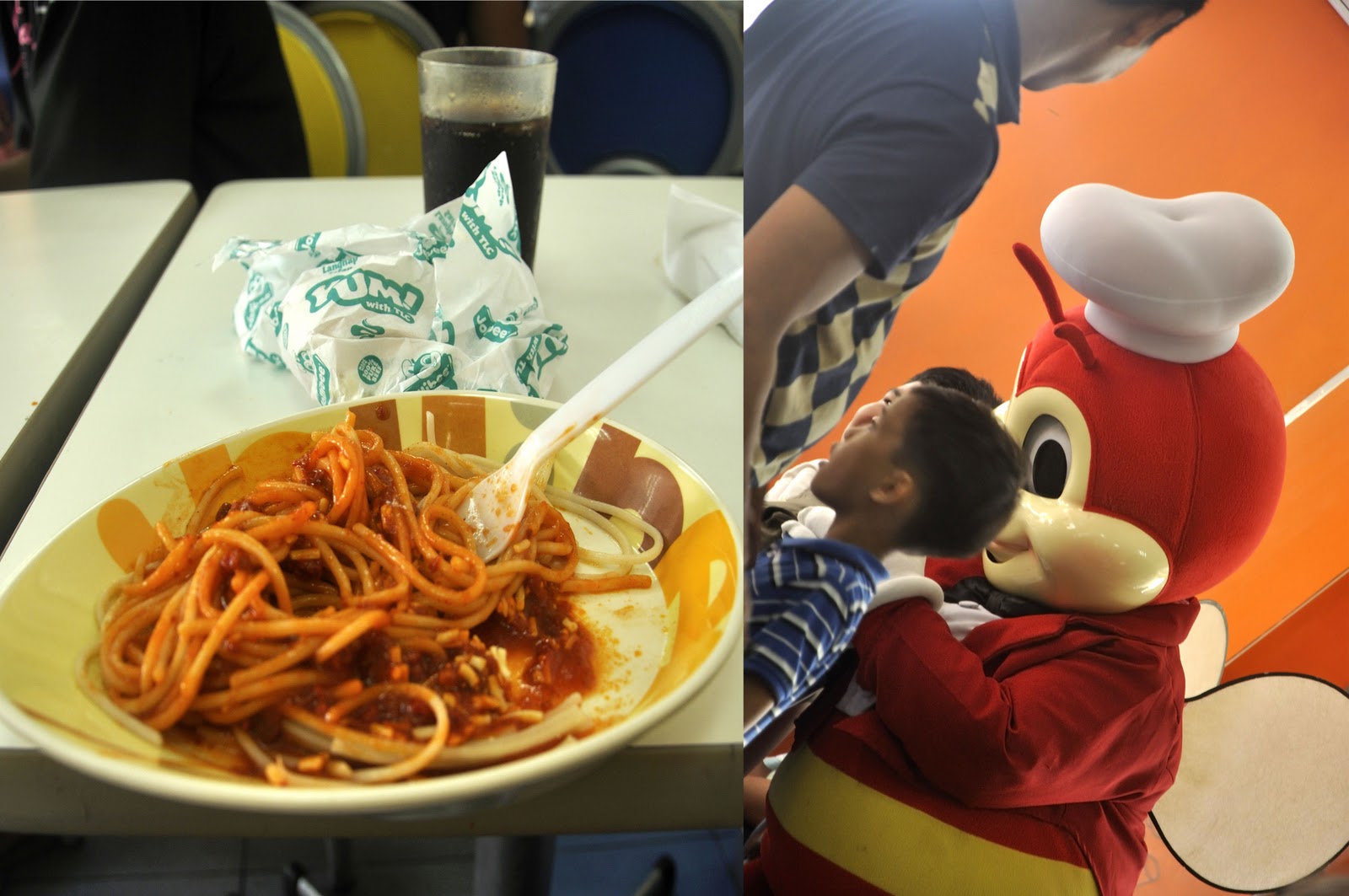 | My extra special local Jollibee (pun intended) meal, with the special appearance of Jollibee him self |
